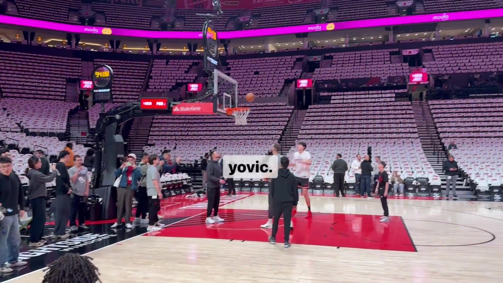 迎常规赛首秀!拓记:杨瀚森进场热身 场边围满了媒体